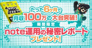 2026年、ガチで脱サラして会社依存脱却したい人向けの戦略【期間限定プレゼントあり】 ごっちん公式メルマガ メールアドレスの入力はこちら↓↓↓ なぜ2023年に40歳で脱サラした超後発組が、noteを始めてから「たった6ヶ月」で月収100万の大台を突破できたのか...